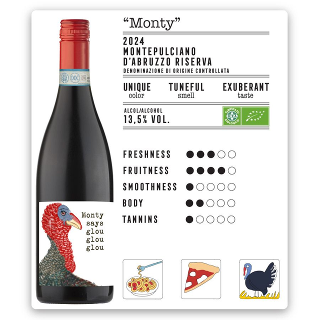 This box contains 12 wine bottles of "Monty" Montepulciano d'Abruzzo DOC 2024.